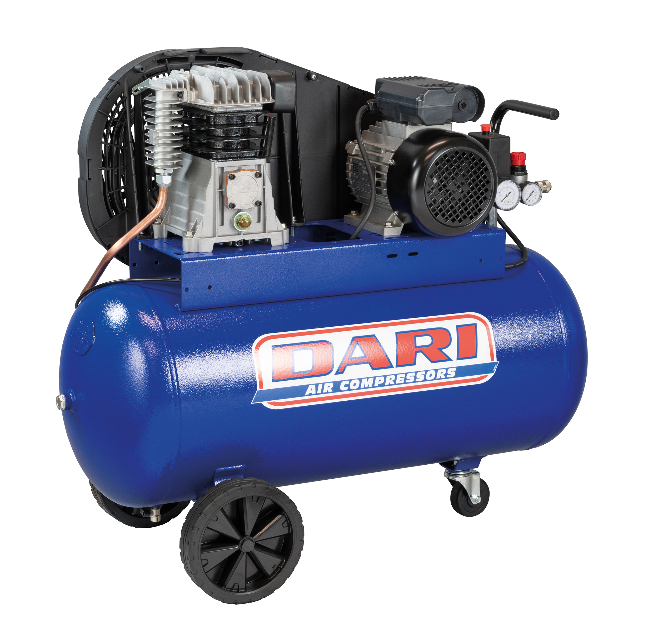 Equipped with transport wheels and a handle, the compressor offers mobility and is suitable for applications requiring reliability, stability, and consistent air output.