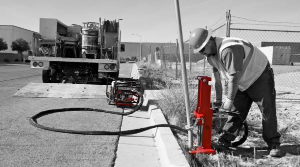 The CP post puller can be powered by a hydraulic power pack, or connected to a hydraulic outlet on a truck, excavator or loader.