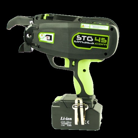 SIMA STG 45 Rebar Tier: Max. Tying Speed: 0.8 secs/tie; Battery type: LI-ION; Ties per Coil (2 wraps): 160 ties; Max Tying: 45 mm.