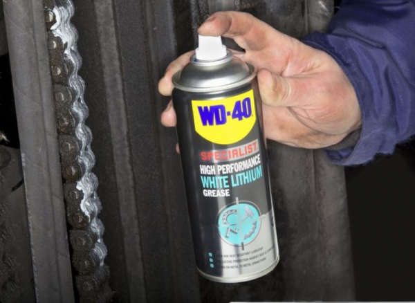 WD-40 white lithium grease sprays on evenly as a liquid and sets dry for a thick, protective coating that won't run off. Effective in a temperature range from 0° F to 300° F, WD-40 Specialist White Lithium Grease provides unbeatable protection with long-lasting lubrication on auto hinges, gears, sprockets, outdoor hinges, latches, overhead door tracks, pulleys, cables and guide rails. It's also excellent for lubricating equipment before placing in storage, and is 50-state VOC compliant.