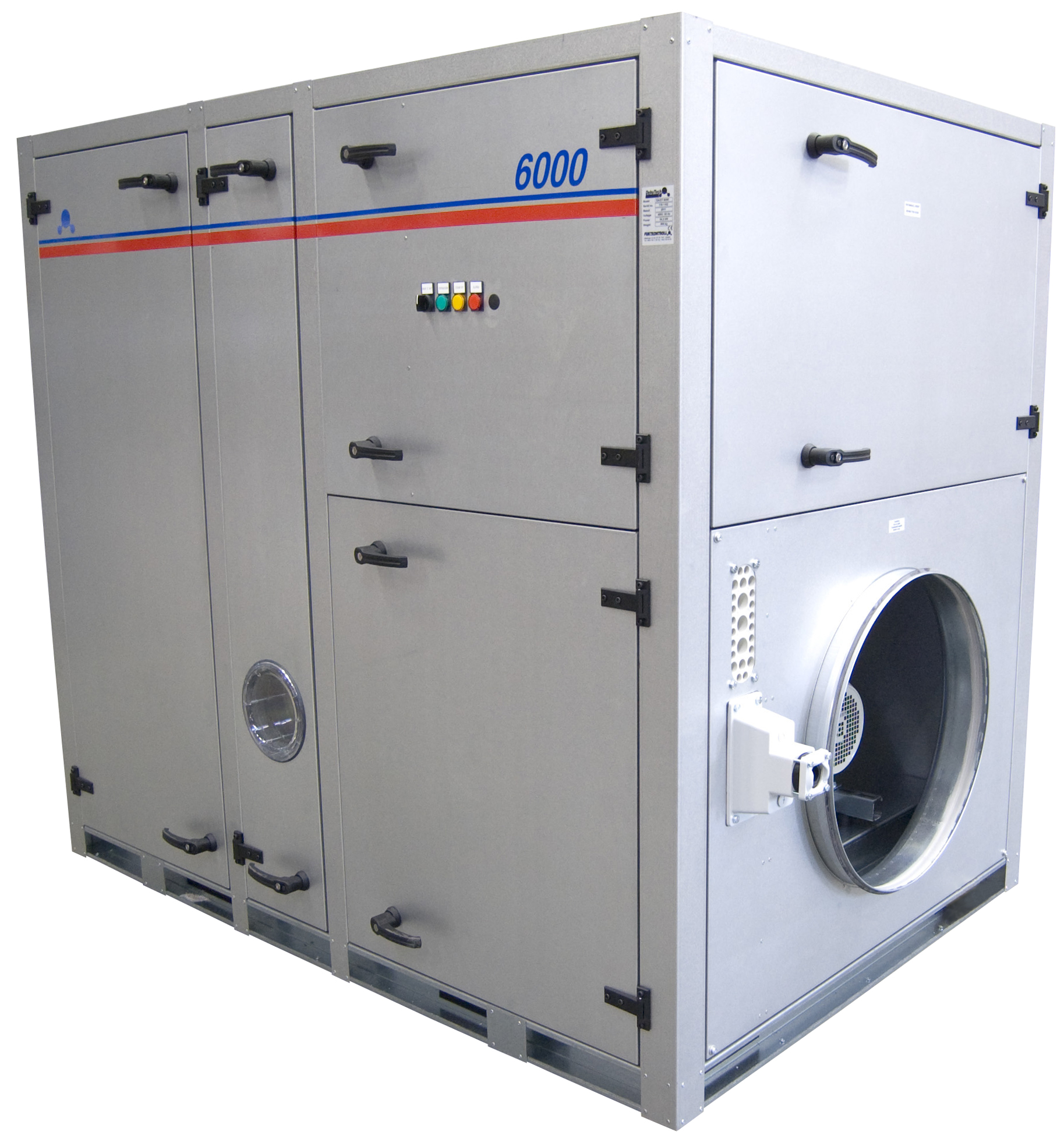 As the larger air volume (process air) passes trough the slowly rotating rotor, the water vapour is adsorbed by the rotor material. This reduces the humidity of the air which will then leave the dehumidifier as dry air. This dry air is then introduced into the space to be dehumidified or to any manufacturing process where low humidity is required.