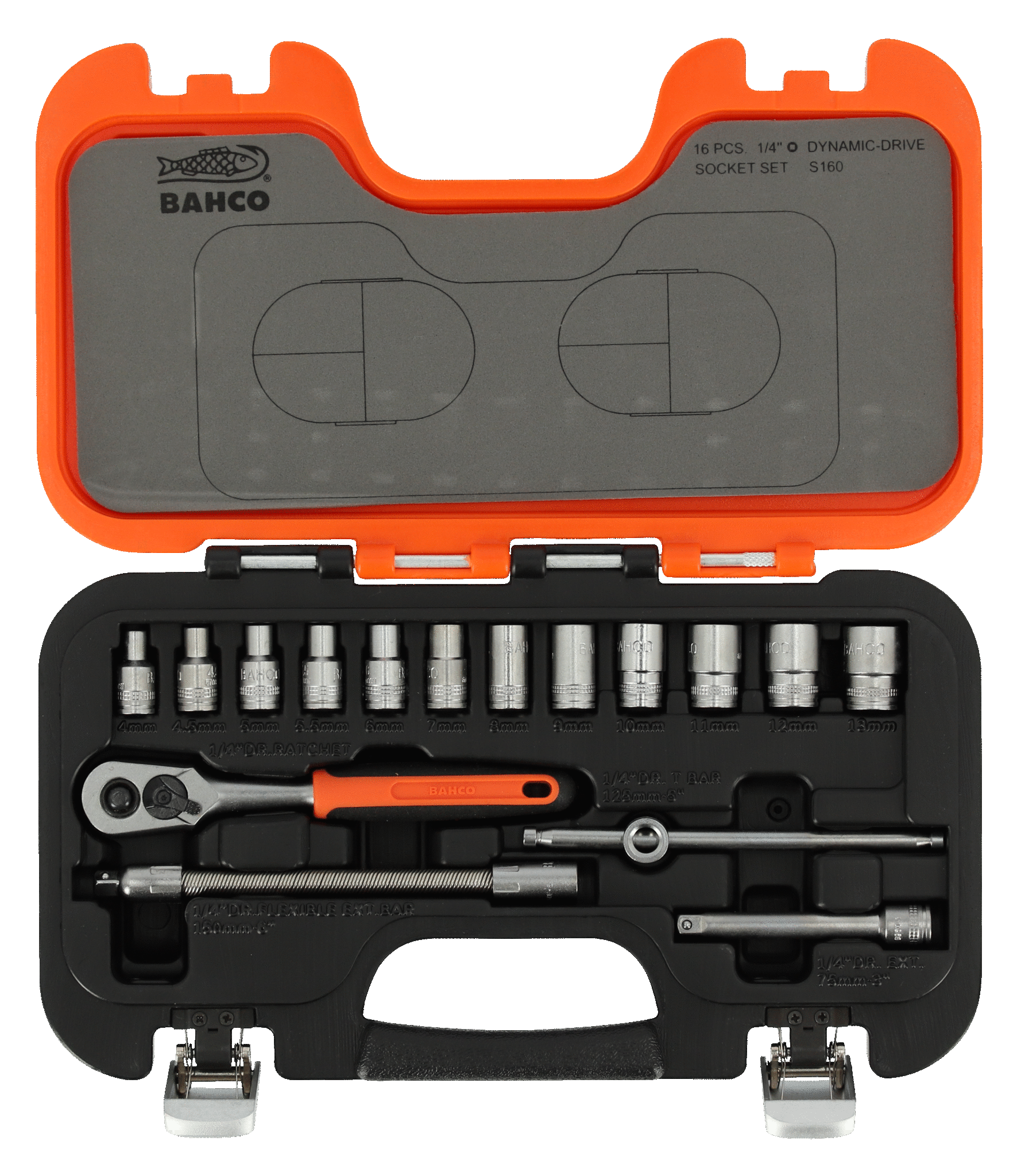 - 12 pcs 1/4" hex sockets: 4 4.5 5 5.5 6 7 8 9 10 11 12 13 mm
