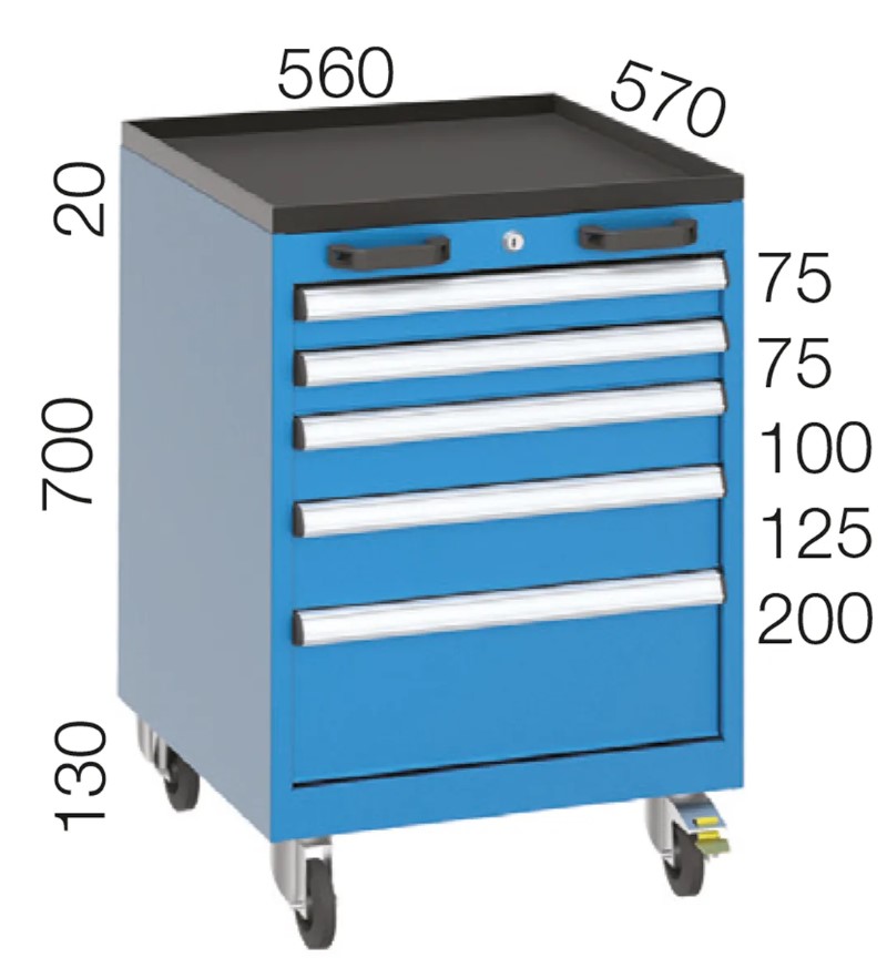 - 2 fixed, 1 mobile and 1 brake wheel of 100 mm;