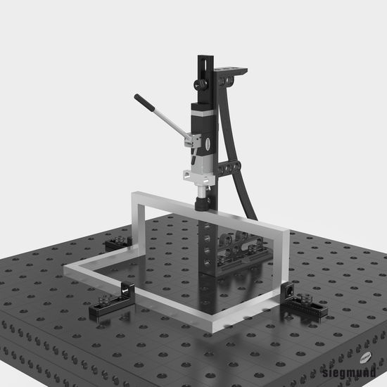 The table press is used for straightening deformed steel products. With a compressive force of 2,5 tons, parts that have unwanted unevenness or tension in the material, can be straightened. With the additionally available pipe bending stamp, pipes with a diameter of up to 42 mm can be bent flexibly.