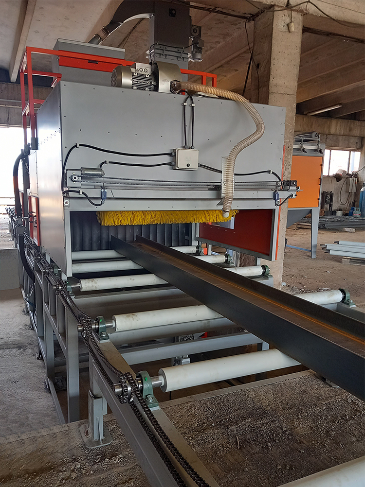 Kammarton Bulgaria realizes the supply, installation and commissioning of a through blasting turbine machine with a roller conveyor for blasting steel profiles, pipes and sheet material.